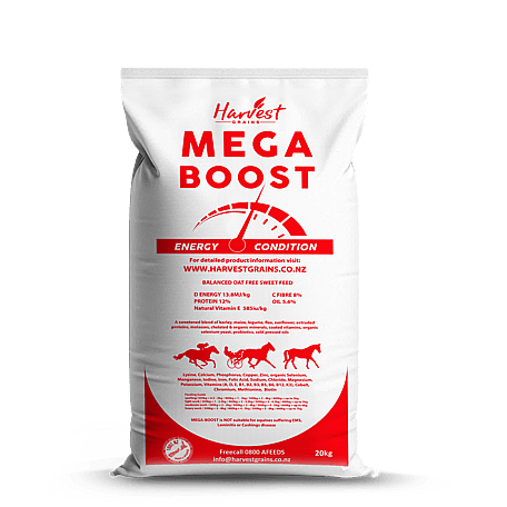 If feeding MegaBoost for the first time gradually introduce over a minimum 14 days so the horses digestive system can adjust gradually to the new diet, proteins and oils. When in moderate/heavy work split daily total between a minimum 3 feeds per day. Provide additional good quality fiber and give open access to fresh clean drinking water and salt block if needed. Selenium testing is advisable to ensure levels meet the horses individual needs.